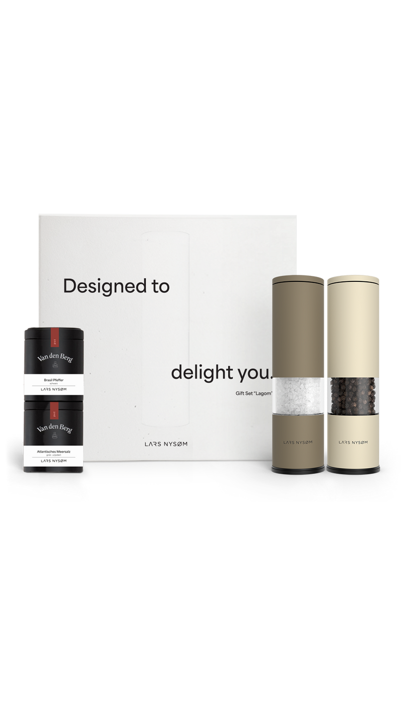 The "Lagom" Spice Mills are the perfect balance between minimalism and functionality and have won several prestigious design awards. The gift set includes two salt an pepper mills, paired with exquisite spices from Van den Berg and presented in an elegant, thoughtfully designed gift box.